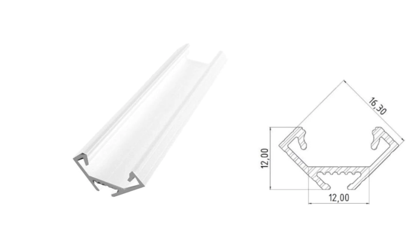 Narożny profil ALU biały lakier 3000mm CORNER white lacquer, max szer taśmy 12mm