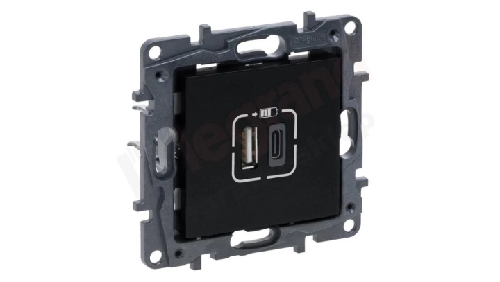 NILOE STEP - GNIAZDO USB 3A TYP A+C - MECHANIZM Z PLAKIETKĄ KOLOR CZARNY 863540