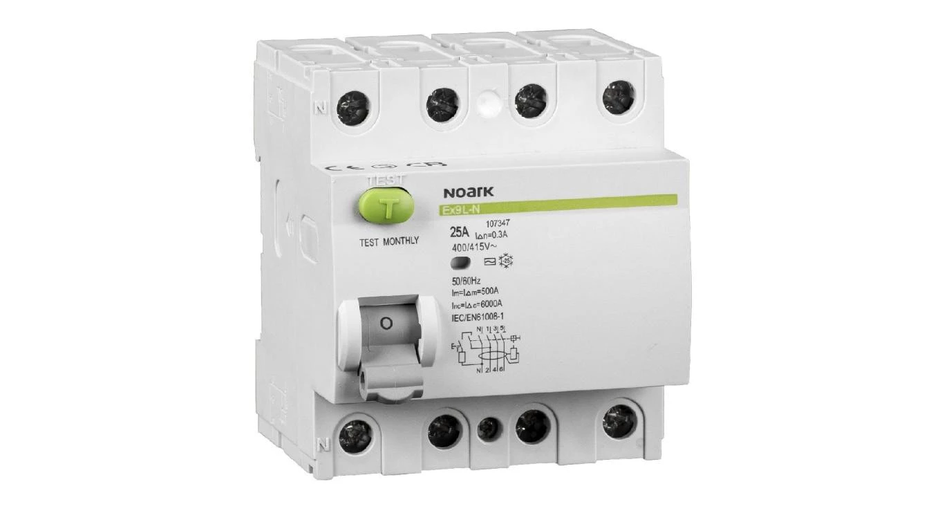 NOARK Wyłącznik różnicowoprądowy 3-faz 4P 25A 100mA 6kA TypA (108365)