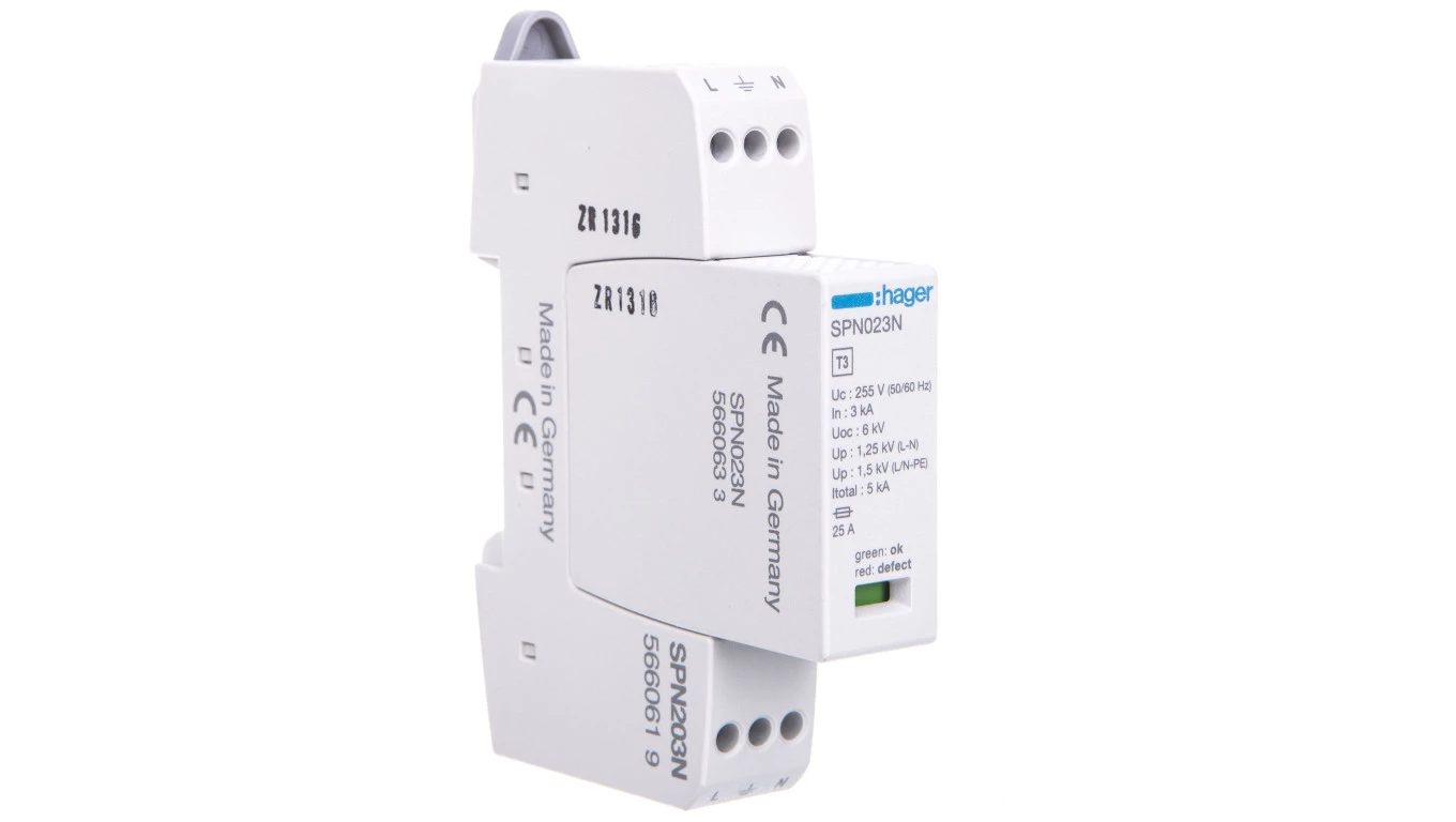 Ogranicznik z modułami wymiennymi 3kA typ 3 ze wskaźnikiem SPD 1P+N SPN203N