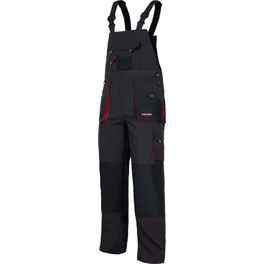 - Wzmocnione szelki, kieszenie oraz kieszenie na ochraniacze kolan materiałem (600D poliester) odpornym na przetarcia