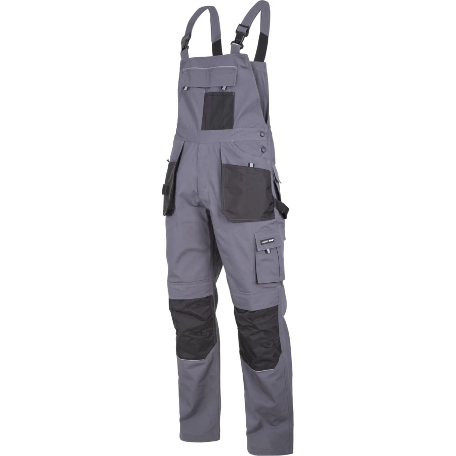 - Wzmocnione szelki, kieszenie oraz kieszenie na ochraniacze kolan materiałem (600D poliester) odpornym na przetarcia