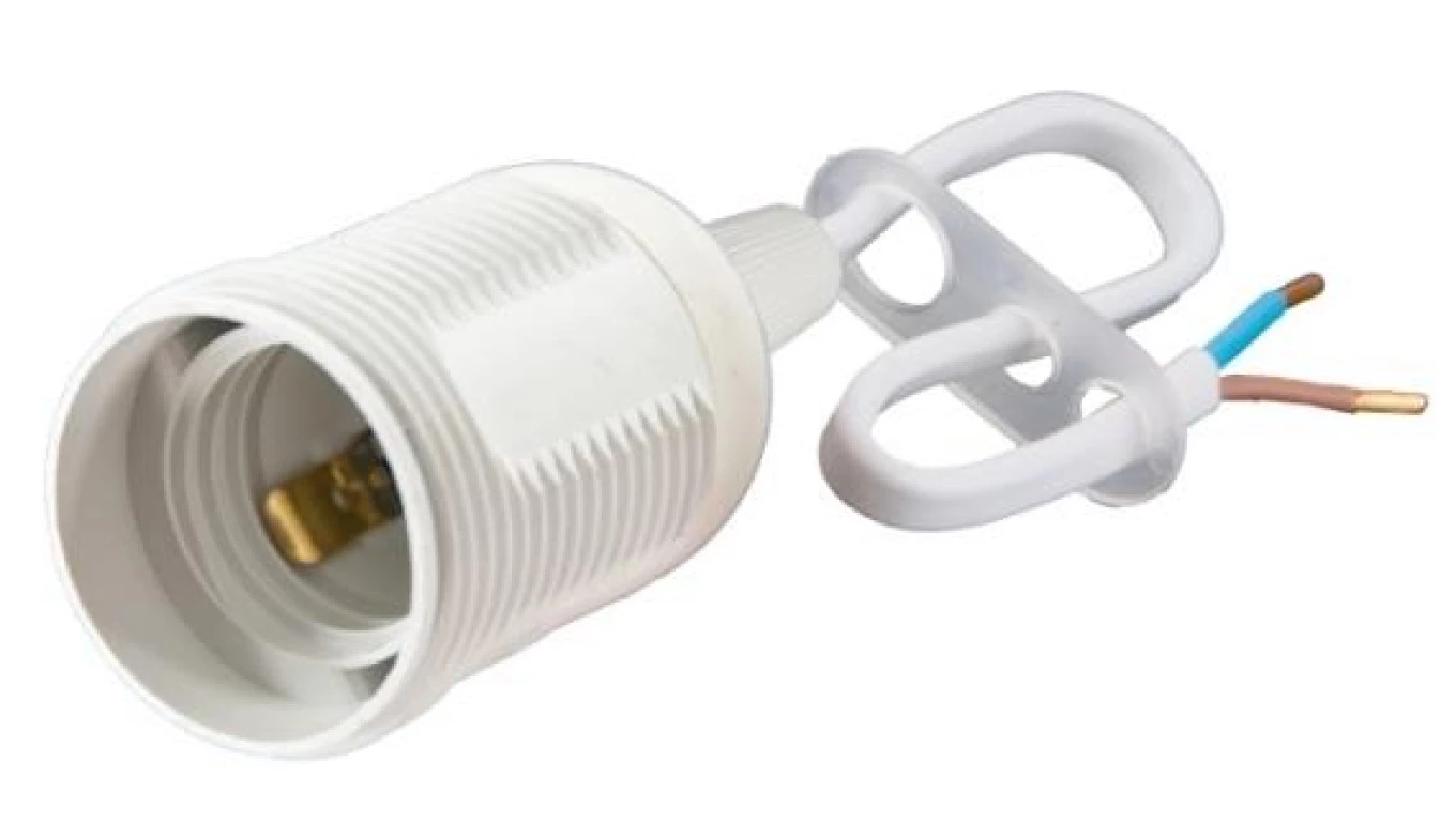 Oprawka oświetleniowa E-27 biała z przewodem 250V max 60W E27-P