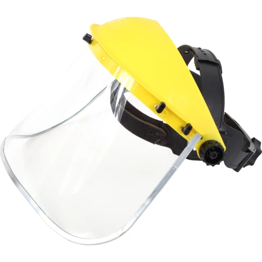 - Osłona przeciwodpryskowa z daszkiem i regulowanym nagłowiem