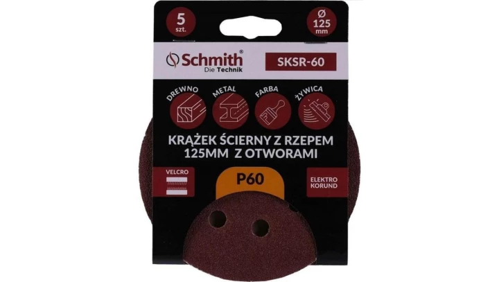 Papier ścierny krążki na rzep z otworami 125mm P60 zestaw 5szt Schmith