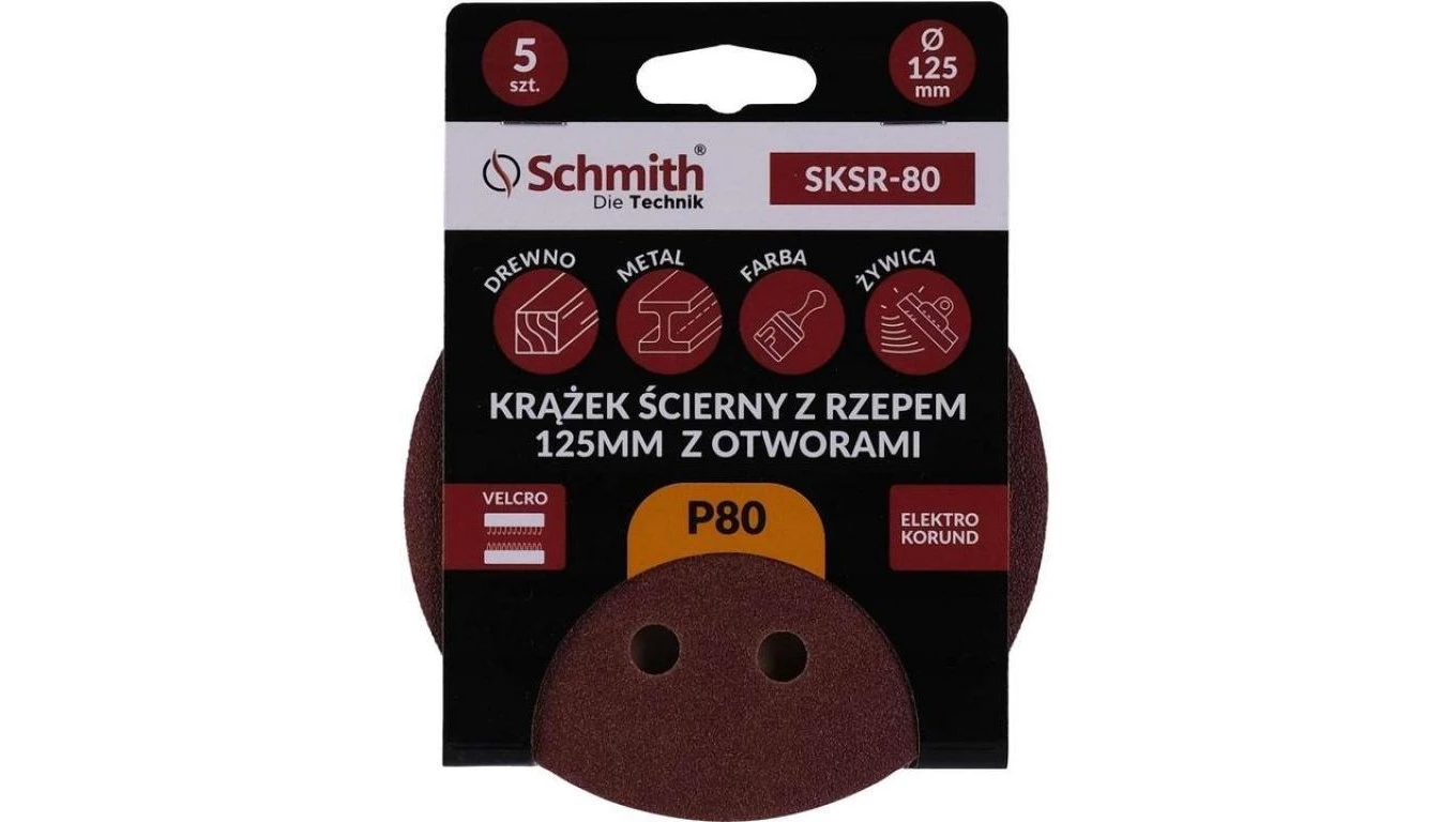 Papier ścierny krążki na rzep z otworami 125mm P80 zestaw 5szt Schmith