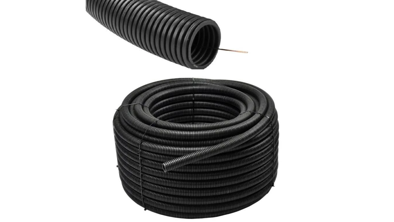 Peszel z Pilotem Rura Karbowana do kabli 25/19mm Wytrzymała 750N Czarna 50M