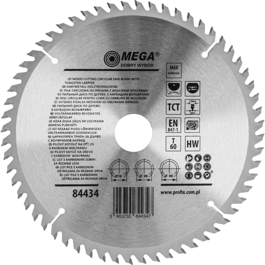 PIŁA TARCZOWA DO DREWNA 210*60T*30/20/16MM