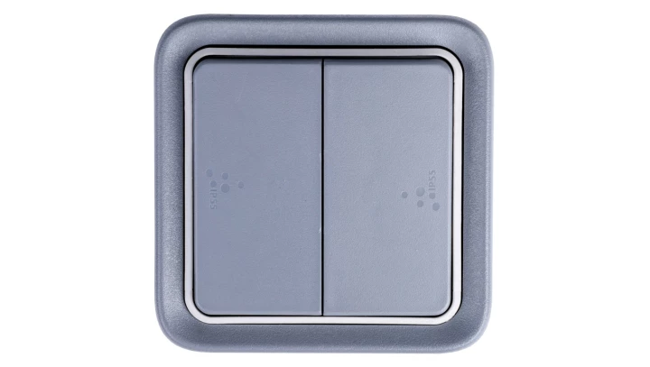 PLEXO55 Łącznik schodowy podwójny z puszką n/t szary 069715