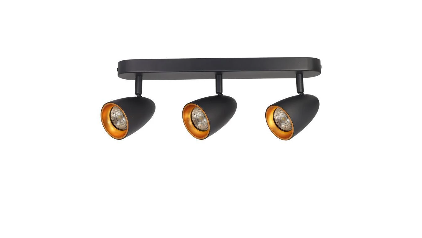Potrójna punktowa oprawa sufitowa typu spot OVO 3 Black Gold, listwa, IP20, 3xGU10, czarna, pierścień złoty EDO777241