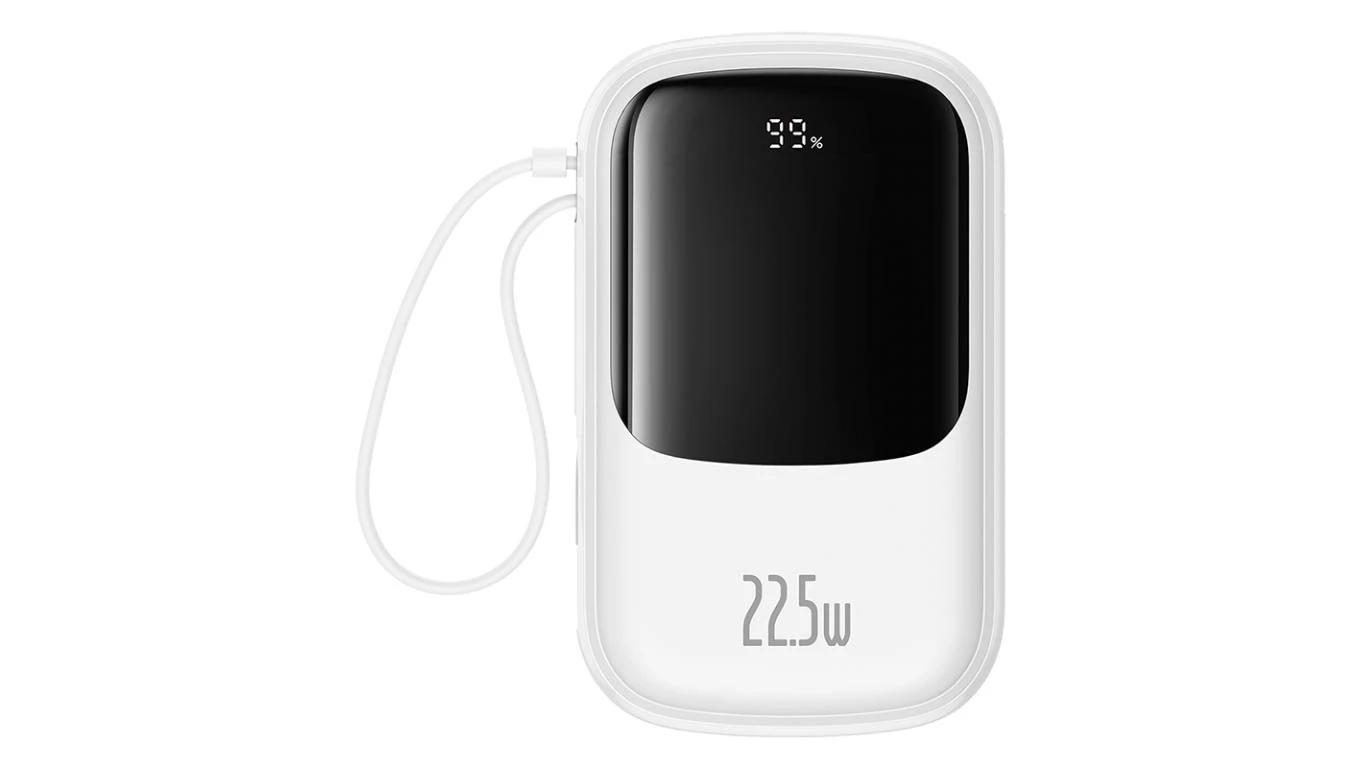 Powerbank Baseus Qpow Pro+ 20000mAh 22.5W z wbudowanym kablem USB-C i wyświetlaczem - biały