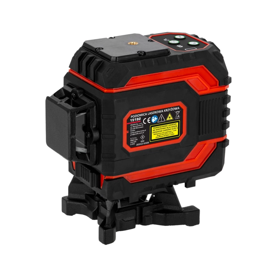 - W komplecie okulary zwiększające widoczność promienia lasera, ładowarka do akumulatorów, uchwyt z magnesem, podstawka obrotowa, pilot , podstawka umożliwiająca podnoszenie lasera w pionie, dodatkowo w modelu 4D uchwyt umożliwiający zawieszenie lasera od góry