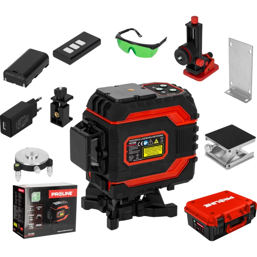 POZIOMNICA LASER. 3 PROM, 360ST WIĄ. ZIELONA, 20M,CE,PROLINE