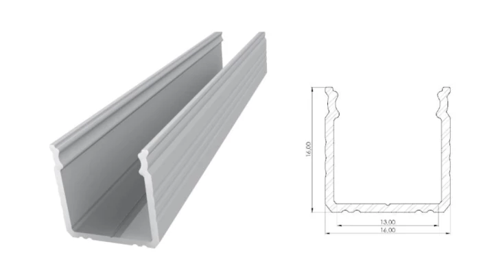 Profil ALU nawierzchniowy 16mm, surowy, dł 3000mm, max szer taśmy 12mm