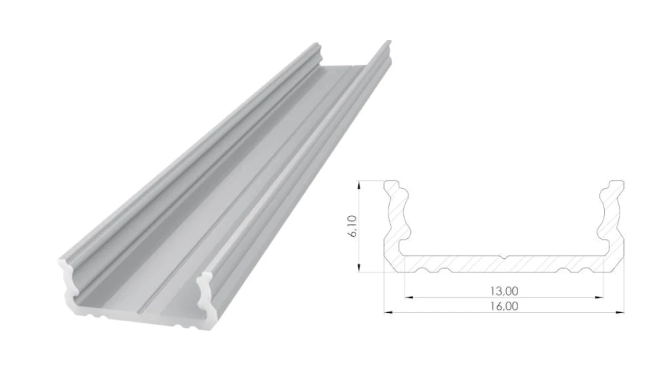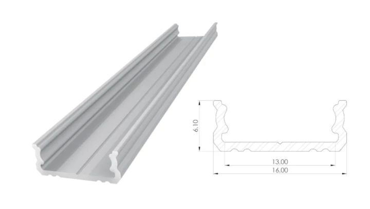 Profil ALU nawierzchniowy 6,1mm, surowe aluminium, dł. 1000mm, max. szer. taśmy 12mm