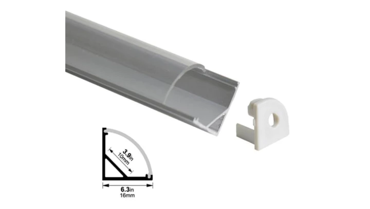 Profil LED kątowy anod. aluminium 2m z kloszem, zaślepkami i uchwytami, dla taśm do 10mm