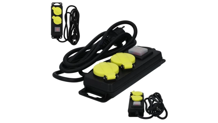 Przedłużacz elektryczny listwa zasilająca Kabel zasilający warsztatowy OW 3x1,5 (wtyk / 2 gniazda) 16A czarny 3m