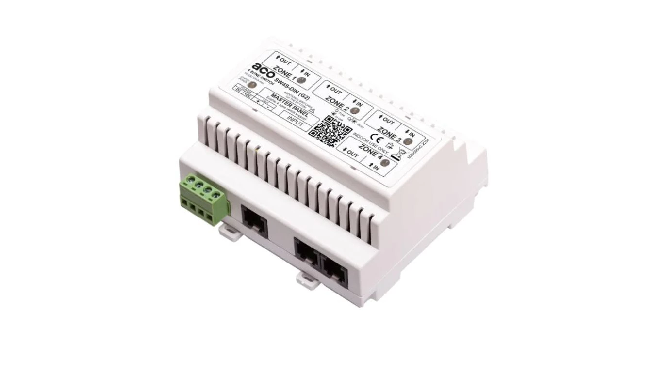 Przełącznik 4 stref do paneli Inspiro + wideo/audio, obsługa do 1020 lokali, na szynę DIN SW4S-DIN