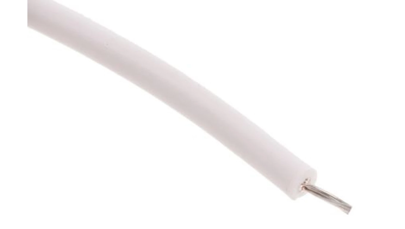 Przewód o podwyższonej odporności ETFE Biały, 100m 19/0,15 mm, 600 V, -75 → +150C, Ø 1.3mm, RS PRO