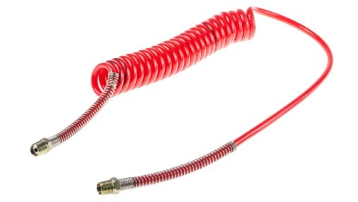 Przewód pneumatyczny spiralny 2m Czerwony, PUR, BSPT 1/4i148 męskie RS PRO