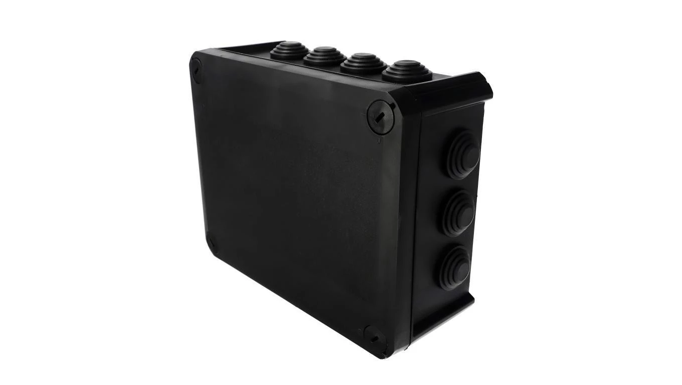Puszka hermetyczna 190x150x75mm natynkowa z dławikami bezhalogenowa, odporna na UV, dekiel przykręcany czarny IP66