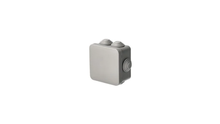 Puszka hermetyczna natynkowa 70x70x35mm z dławikami,bezhalogenowa, odporna na UV, zamknięcie na klik IP55 szary