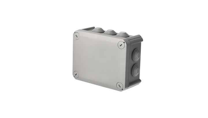 Puszka hermetyczna natynkowa z dławikami 150x115x65mm bezhalogenowa, odporna na UV, dekiel przykręcany IP66 szary