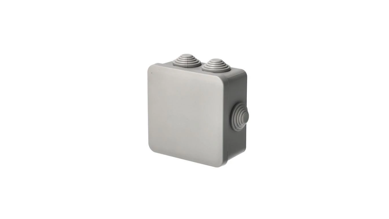 Puszka hermetyczna natynkowa z dławikami 85x85x45mm bezhalogenowa, odporna na UV, zamknięcie na klik IP55 szary
