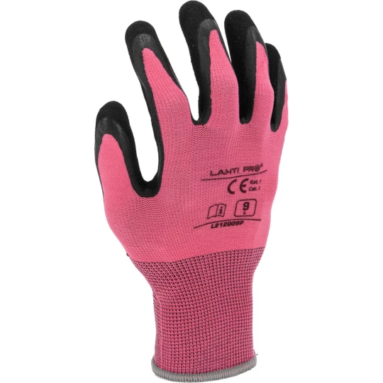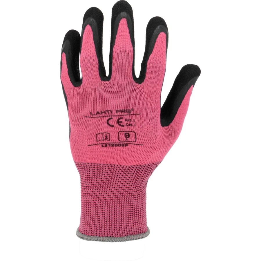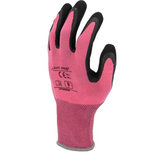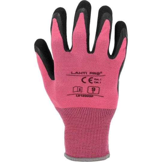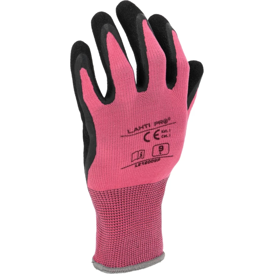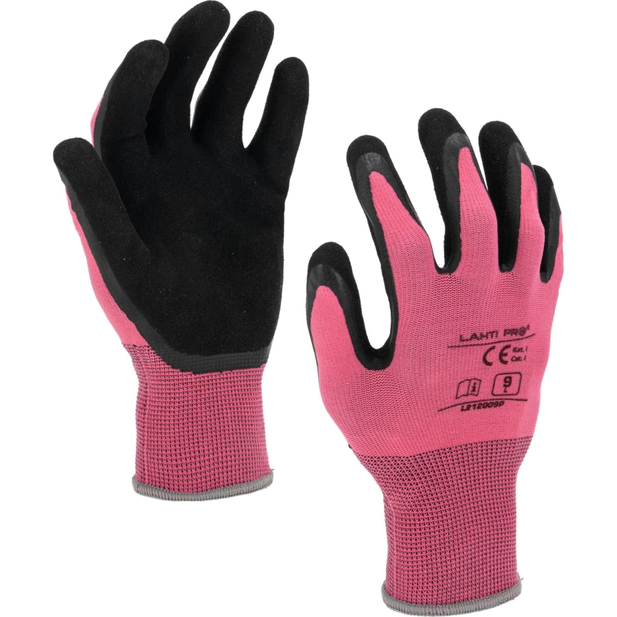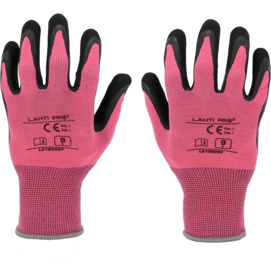 RĘKAWICE LATEKS RÓŻOWO-CZARNE L212009P, KARTA, "9", CE,LAHTI