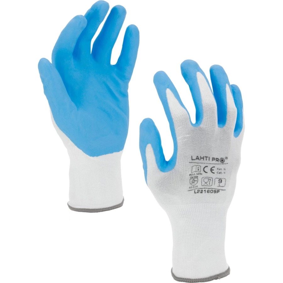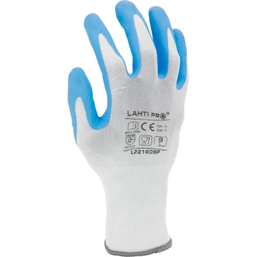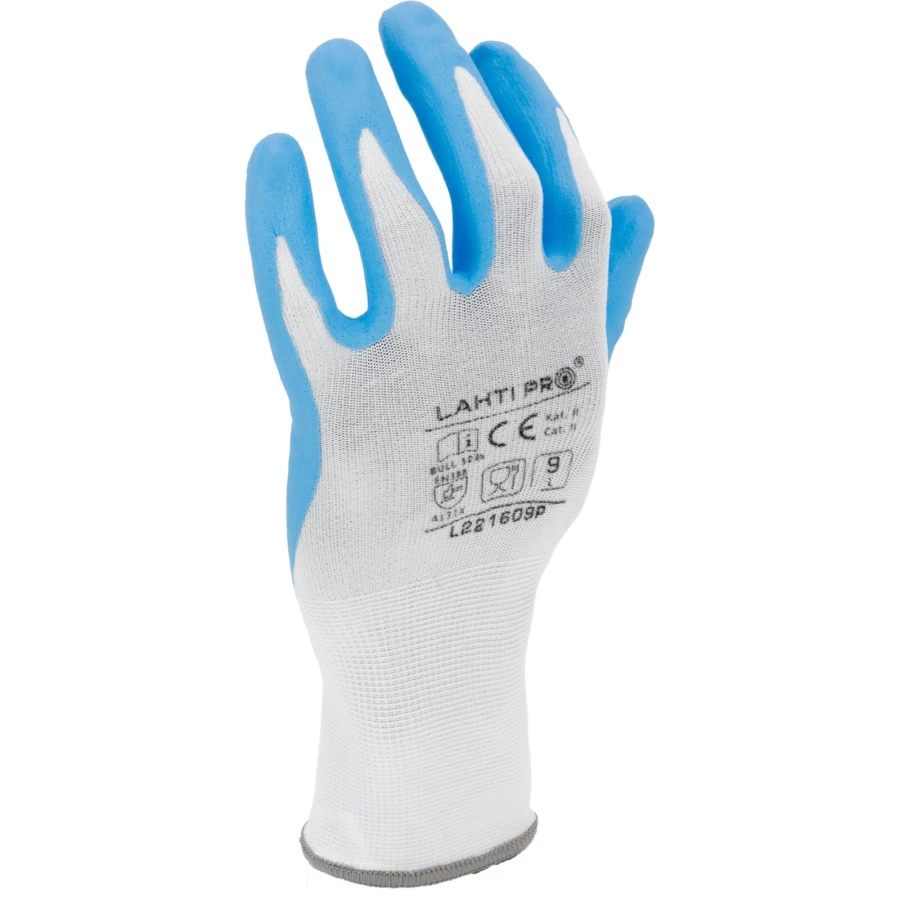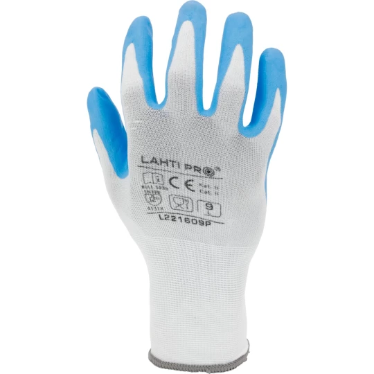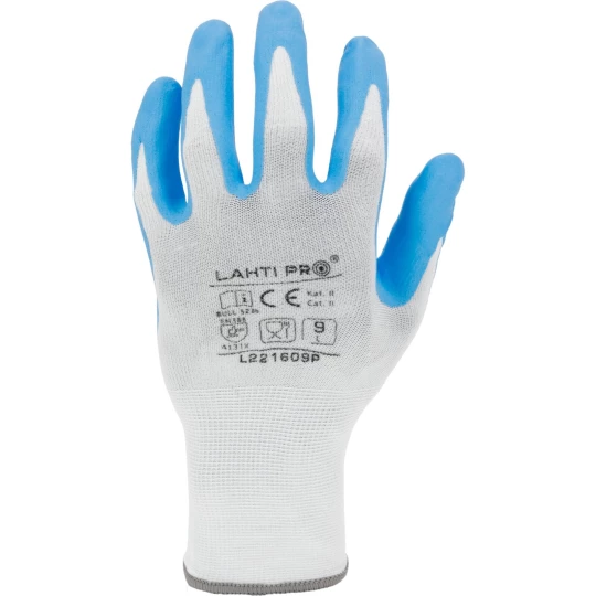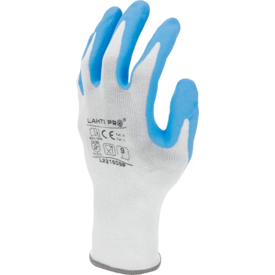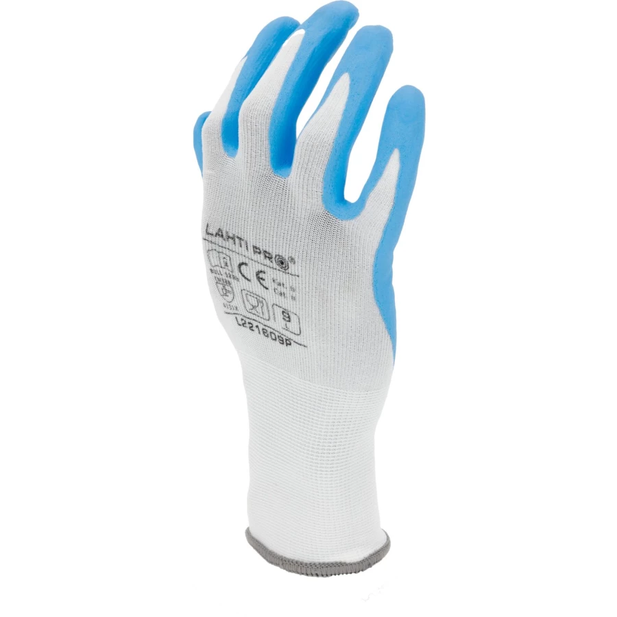 RĘKAWICE NITR. BIAŁO-NIEB. L221610P, KARTA, "10", CE, LAHTI