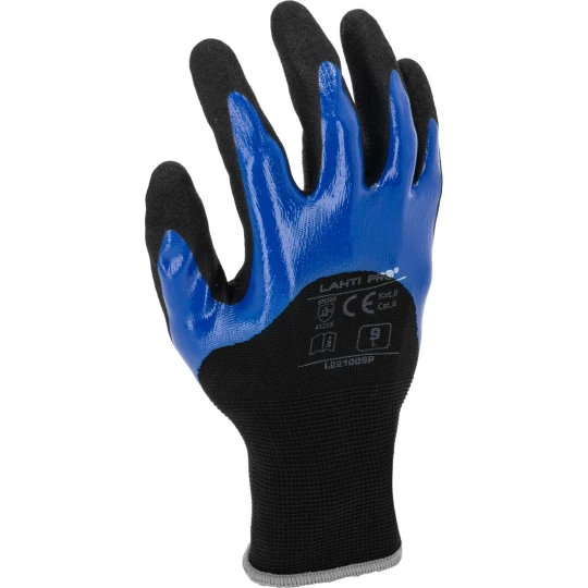 RĘKAWICE NITR. CZARNO-NIEB. L221009P, KARTA, "9", CE, LAHTI