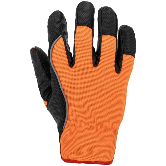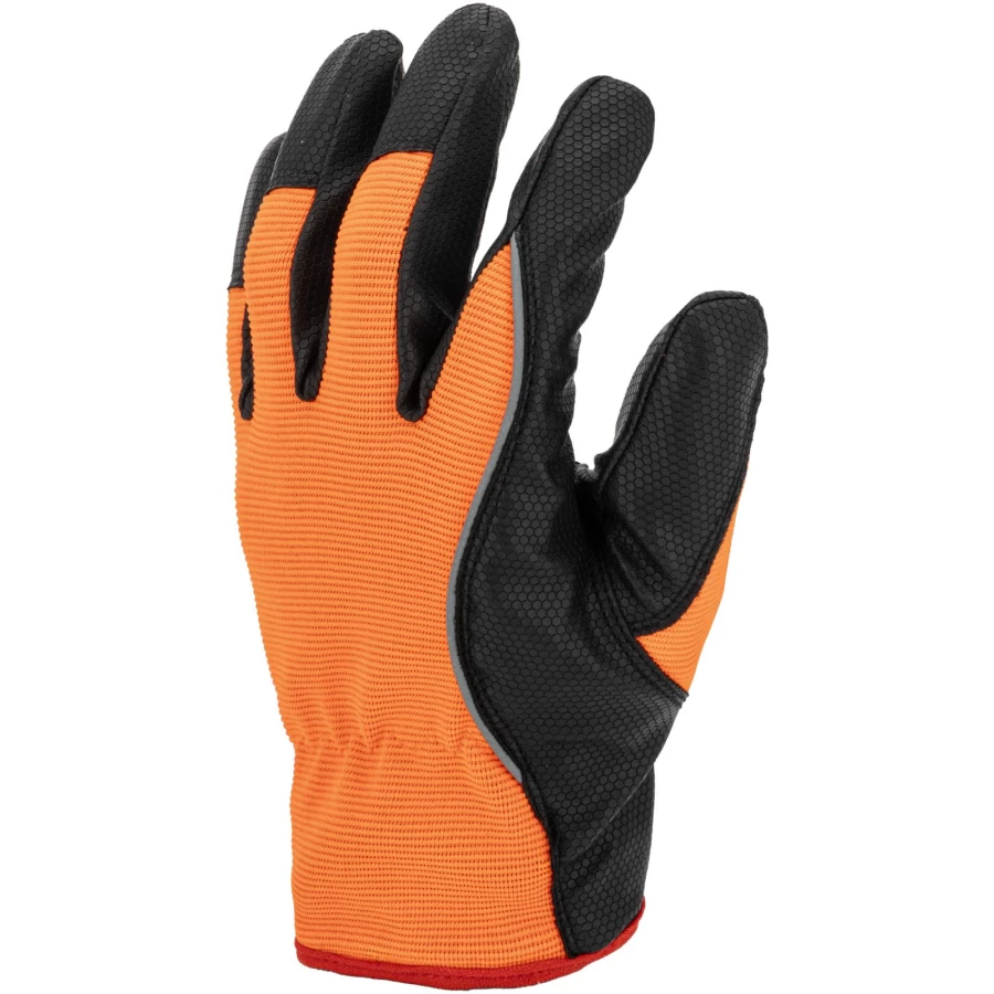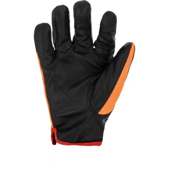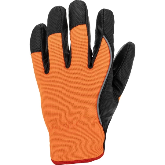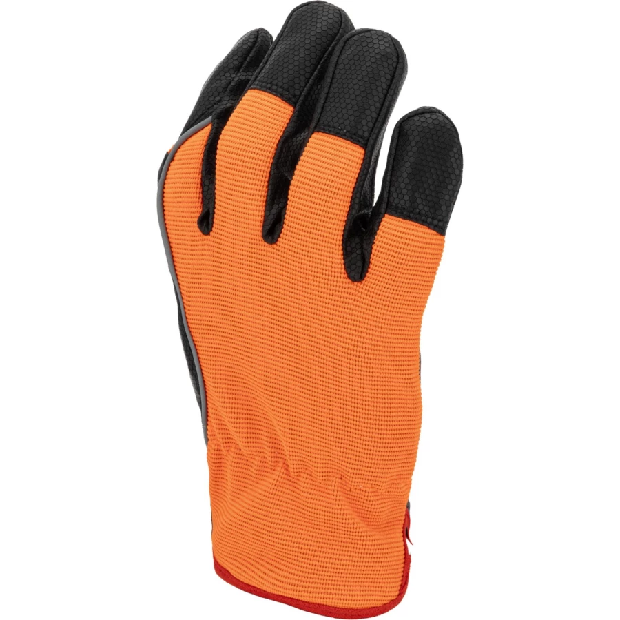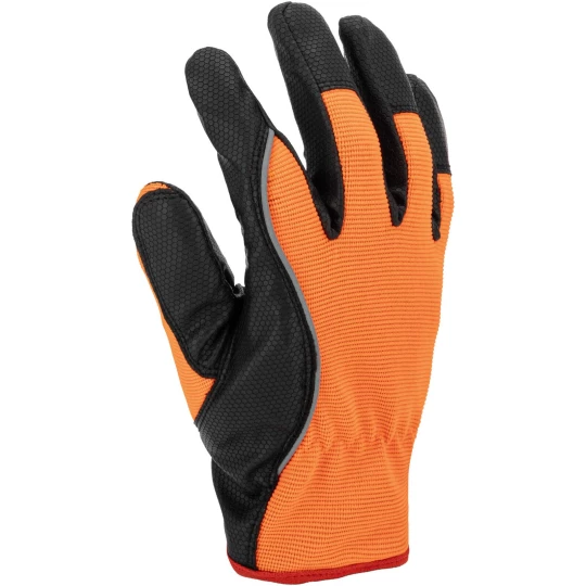- Wierzchnia część rękawicy wykonana z elastycznego materiału o podwyższonej widoczności zapewnia idealne dopasowanie do dłoni