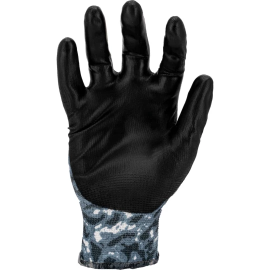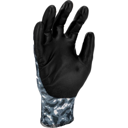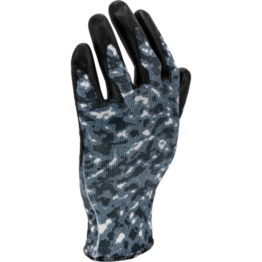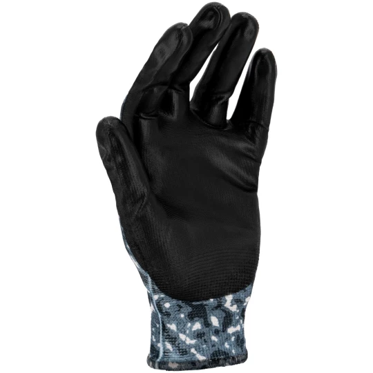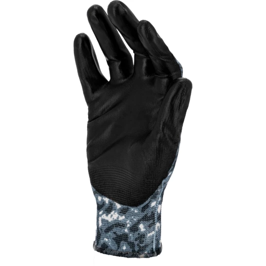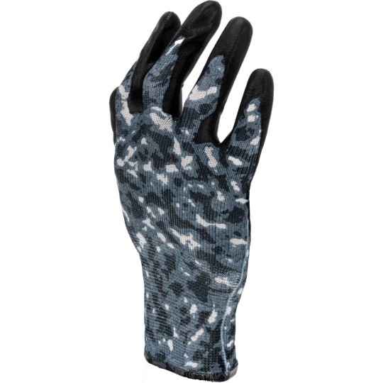 - Powlekane poliuretanem na całej części chwytnej oraz na zakończeniach palców po stronie zewnętrznej, zapewniającym wysoką manualność oraz doskonałe czucie trzymanego przedmiotu