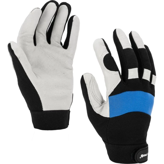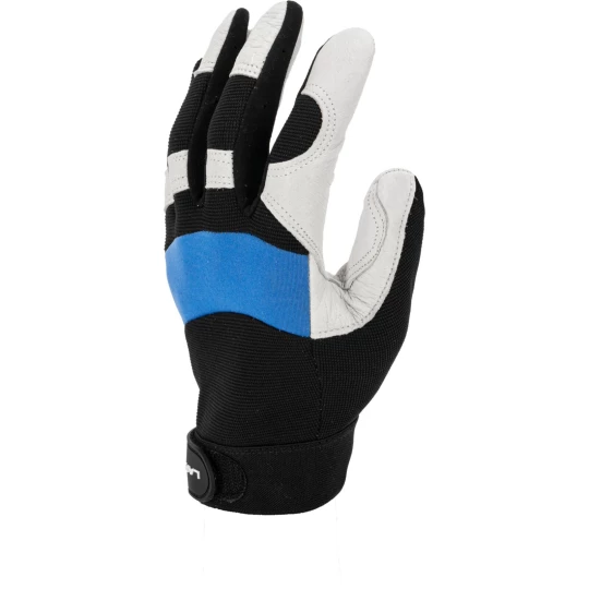 - Wykonanie części chwytnej z jednego kawałka skóry zwiększa trwałość rękawicy