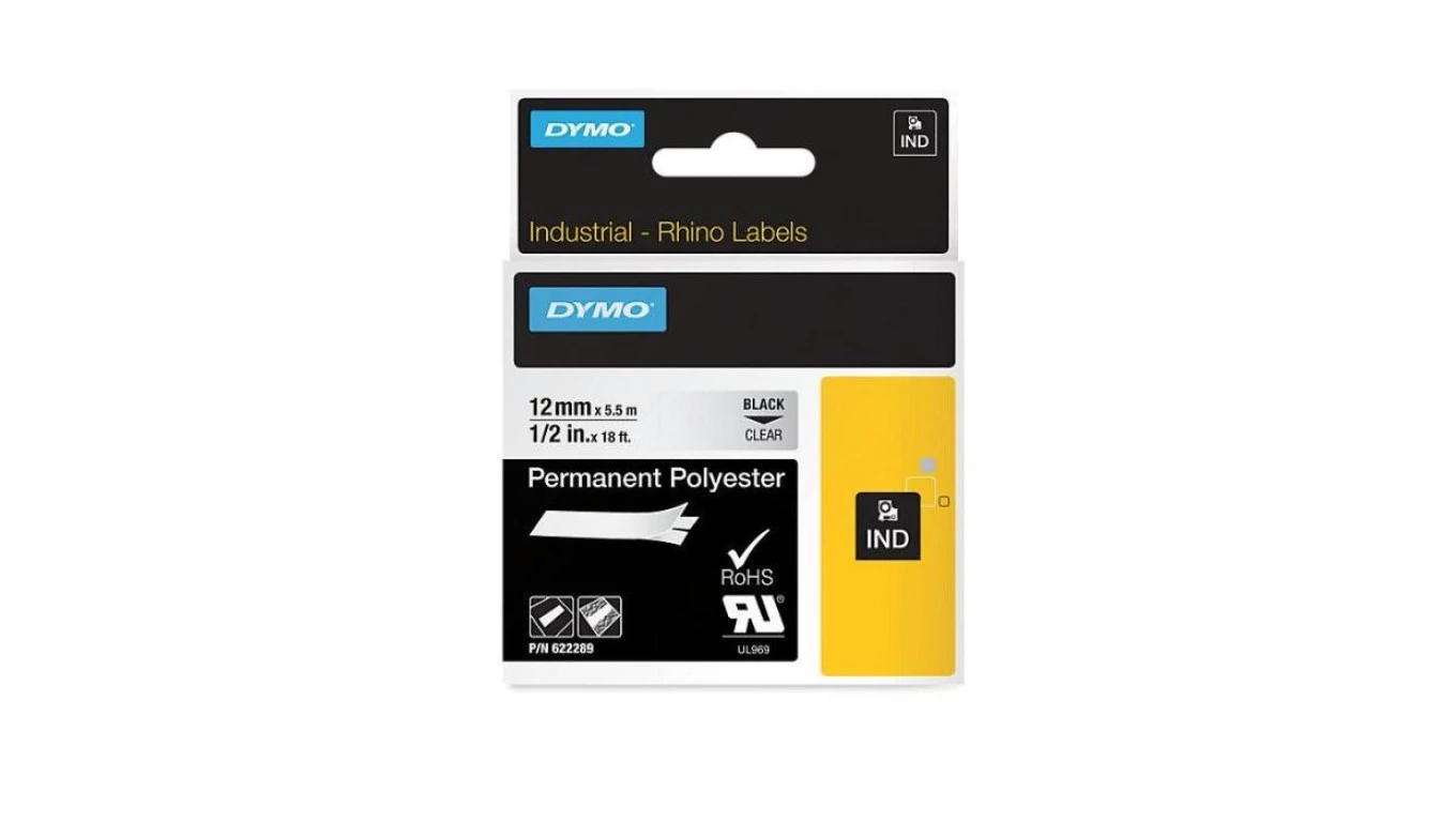 RHINO Taśma poliestrowa 12mm x 5,5m czarny / przeźroczysta