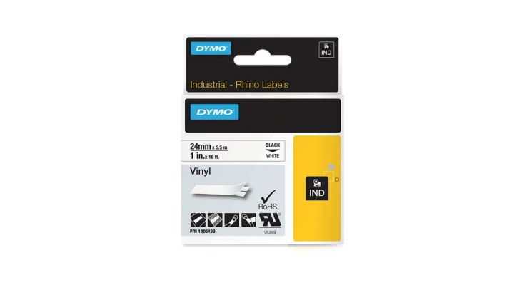 Taśma DYMO IND winylowa uniwersalna 9mm x 5,5m (czarna / biały nadruk) RHINO Industrial 1805437 ORYGINALNA