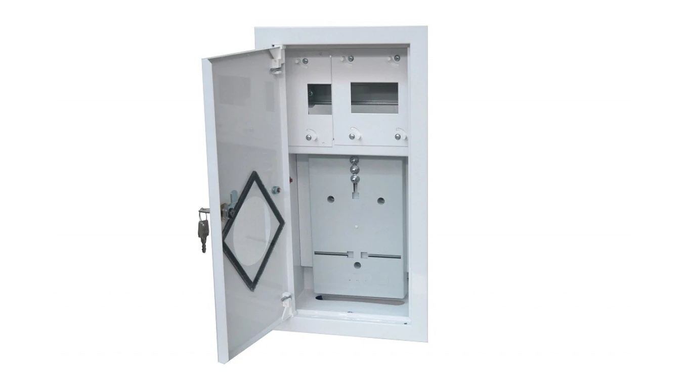 Rozdzielnia podtynkowa metalowa 1 X TL 1F na licznik elektroniczny + 6 zabezpieczeń zamek okienko RAL 9003A-RW6E