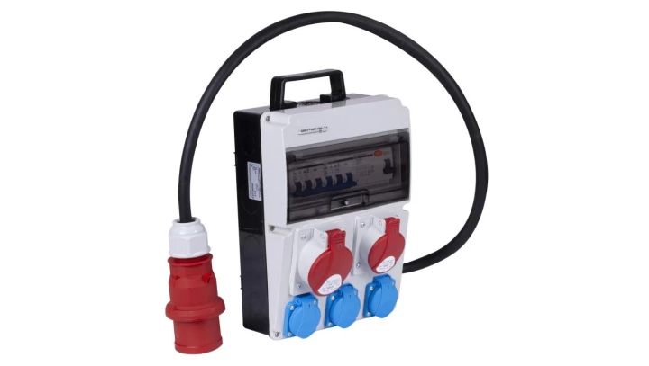 Rozdzielnica budowlana CAS_4-SFI hermetyczna IP44 Wyposażona + 2x gniazdo siłowe 5p (400V 32A + 16A) + 3x gniazdo 2P+Z (230V 16A