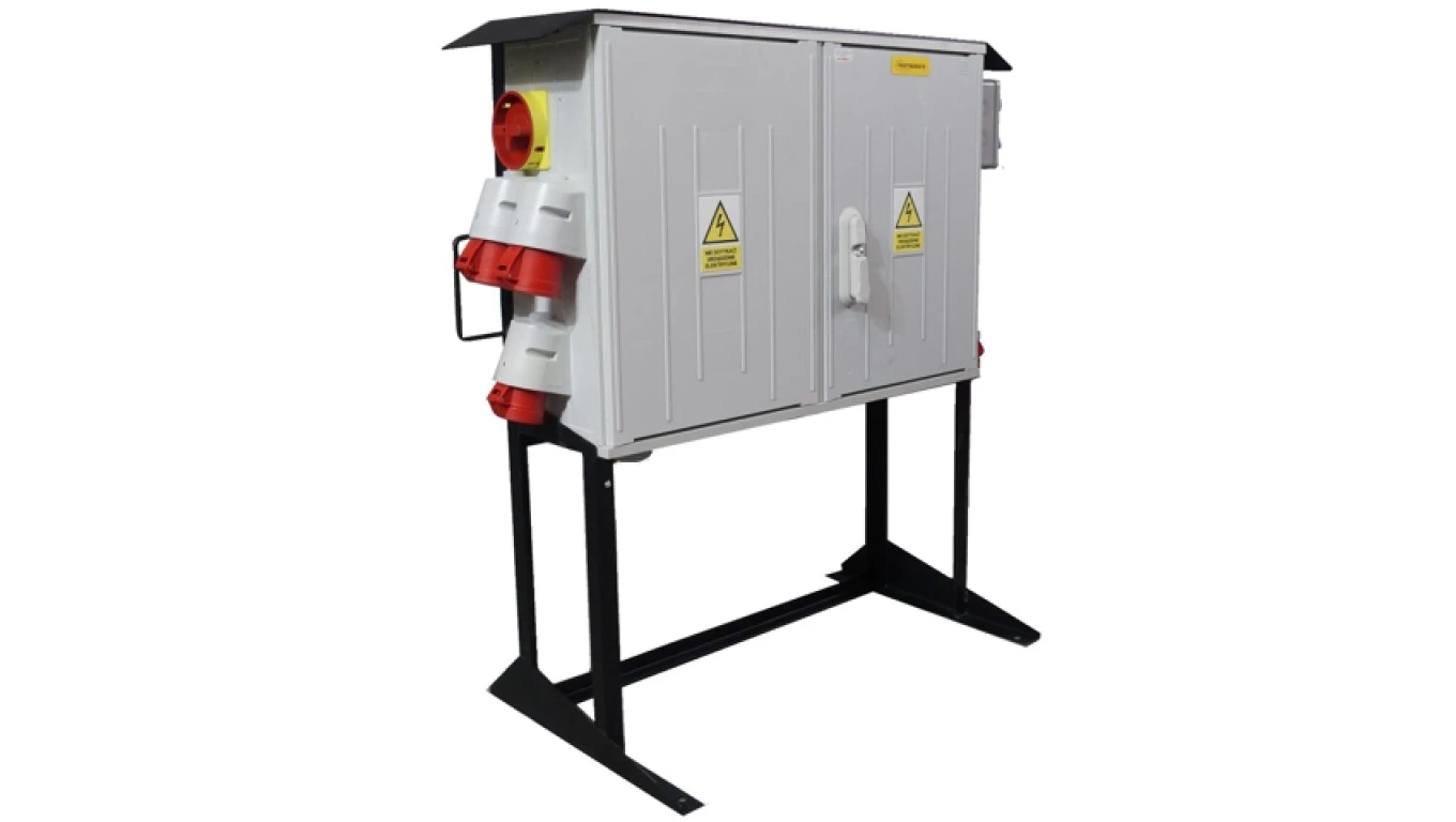 Rozdzielnica budowlana ERB160A2 na stojaku, IP54, gniazda: 1x CEE 63A, 3x CEE 32A, 1x CEE 16A, 4x GS 230V, wyłącznik główny