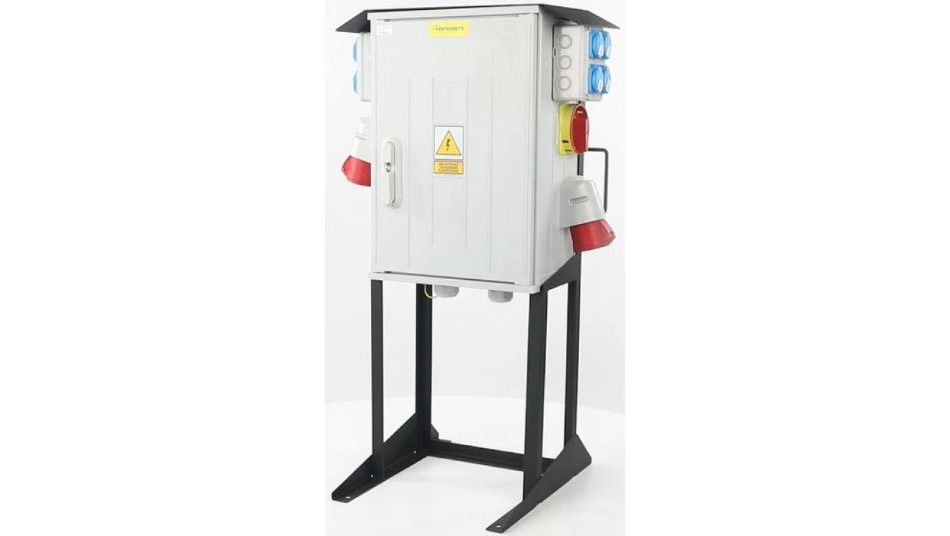 Rozdzielnica budowlana ERB63A2L na stojaku z licznikiem, IP54, gniazda: 2x CEE 32A, 1x CEE 16A, 8x GS 230V, licznik energii