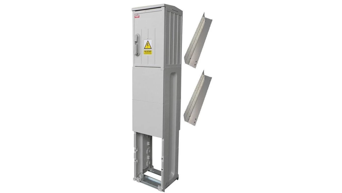 Rozdzielnica elektryczna, obudowa termoutwardzalna na fundamencie z kątownikami typ OZ26x40+F