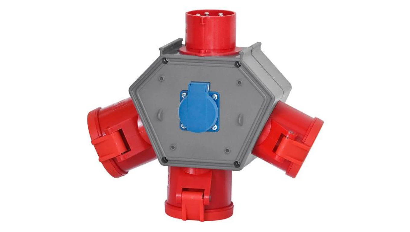 Rozdzielnica POLYBOX - wtyk odbornikowy 16A 5p, gniazda 3x16A 5p, 230V