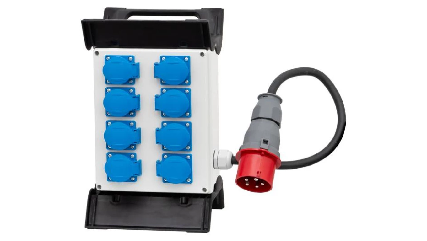 Rozdzielnica R-240 - gniazda 8x230V, przewód OW 5x2,5mm2-1,5m z wtyczką 16A 5p na stelażu plastikowym