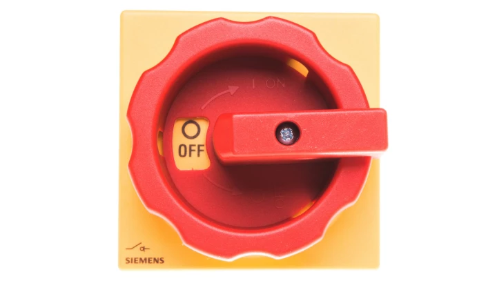 Rozłącznik główny/awaryjny 3P 100A 37kW AC23A 400V montaż na płycie z wałkiem pokrętło żółto-czerwone 4 otwory 3LD2714-0TK53