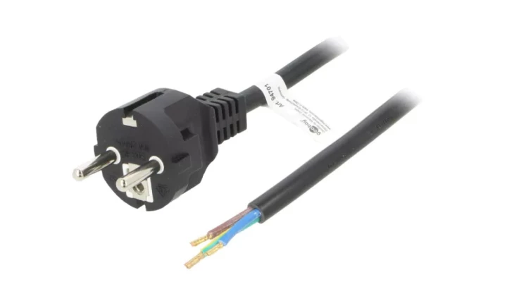 S5-3/07/2BK Kabel CEE 7/7 (E/F) wtyk, przewody PVC 2m czarny 16A 250V