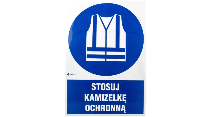 Samoprzylepna tabliczka ostrzegawcza /Stosuj kamizelkę ochronną z podpisem/ IM/015/1/C1/F
