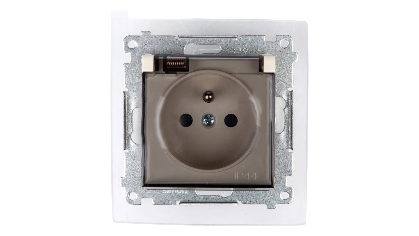 Simon 54 Gniazdo bryzgoszczelne z/u IP44 z klapką transparentną bez uszczelki antracyt DGZ1BUZ.01/48A