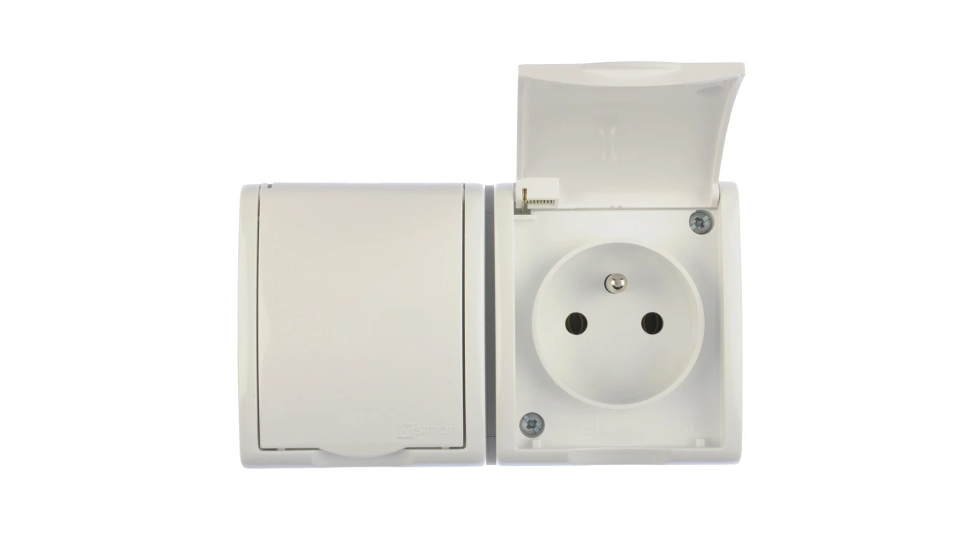 Simon Aquarius Gniazdo hermetyczne pojedyncze z/u IP54 z klapką pełną białe AQGZ1/11