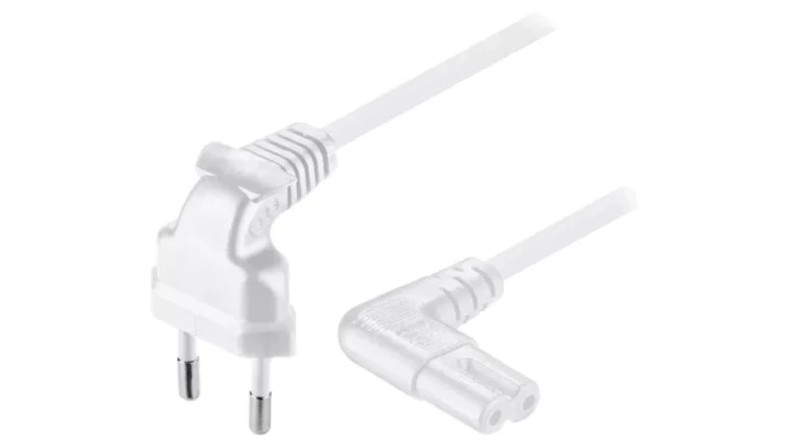 SN15-02/07/050W Kabel CEE 7/16 (C) wtyk kątowy, IEC C7 żeński kątowy PVC 5m