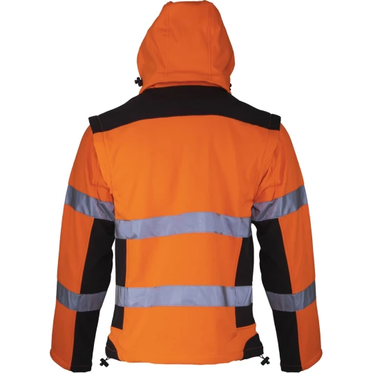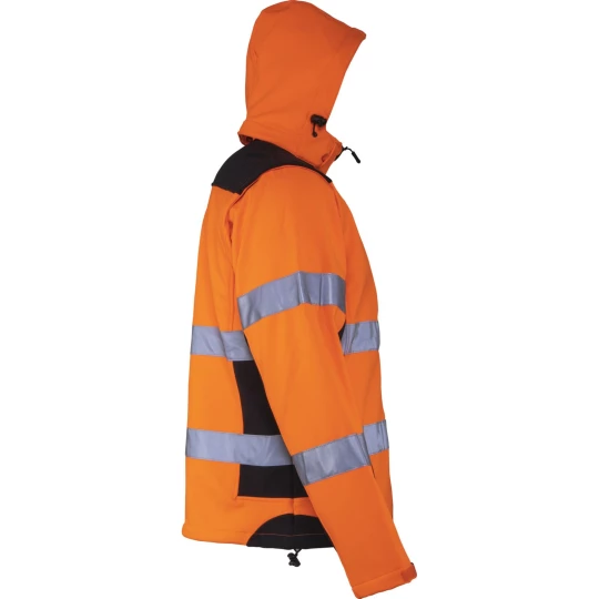 - Specjalna 3-warstwowa tkanina soft-shell z membraną TPU, wodoodporna (8000 mm), oddychająca (3000 g/m²/24h), gwarantujaca wysoki komfort użytkowania